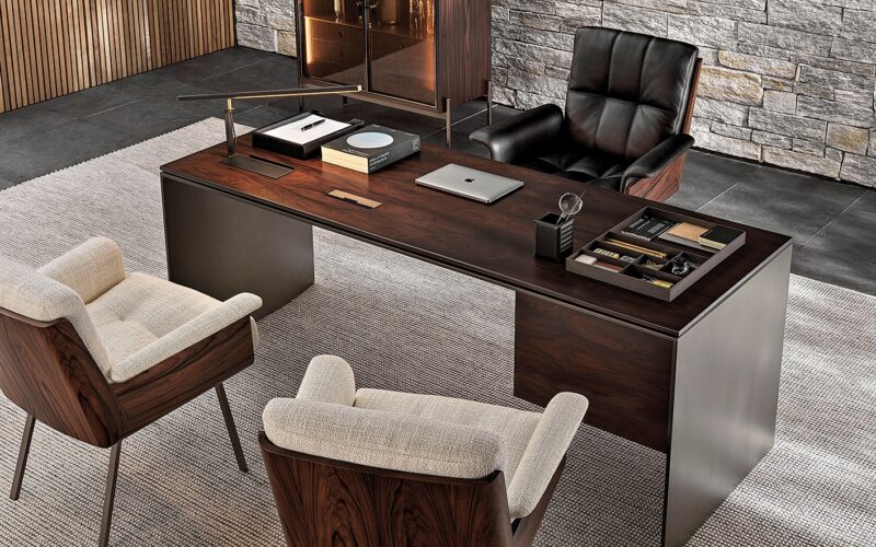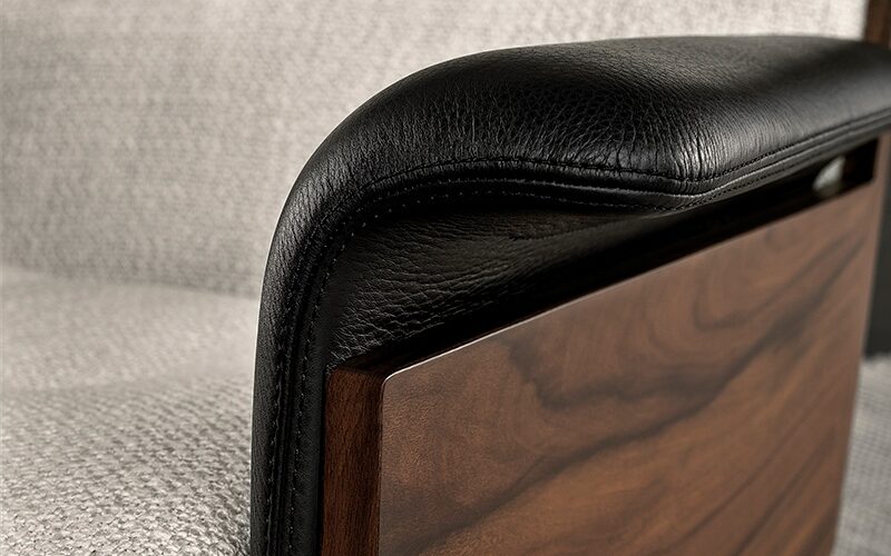 - Khung ghế: Chế tác từ gỗ Palisander Santos với lớp hoàn thiện màu nâu sẫm hoặc gỗ tro sơn đen hở vân, tạo chiều sâu cho bề mặt.